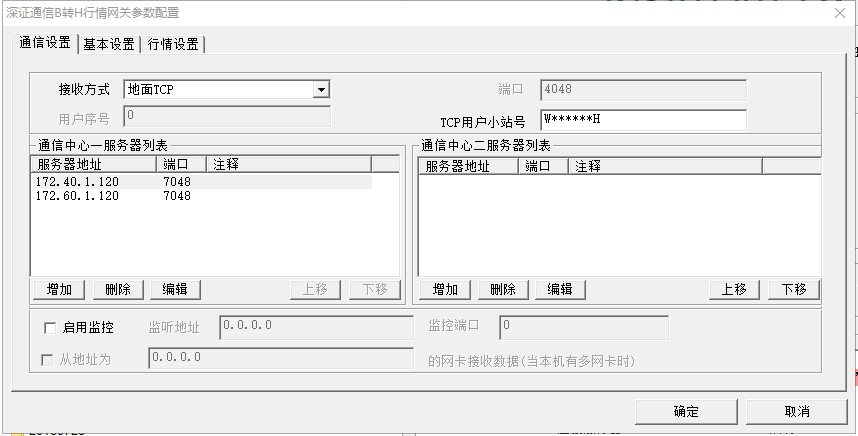 2、 B转H行情网关通信程序的版本日期为20121126,参测单位可从深圳证券通信公司网站下载通信程序、安装组件及用户手册等资料,下载地址为https://biz.sscc.com业务指引—程序下载—B股转H股通信系统中;具体配置如图(小站号复用已有的交易小站号,若无,在https://biz.sscc.com业务指引-业务申请表中下载申请):