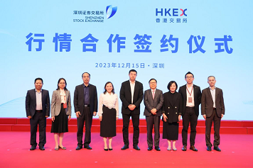 12月15日,在大湾区交易所科技大会主会场,深交所与港交所隆重推出深港行情合作方案,并举行合作协议签约仪式。深证通陈明忠总经理在仪式上代表公司与港交所资讯服务公司签署合作协议。